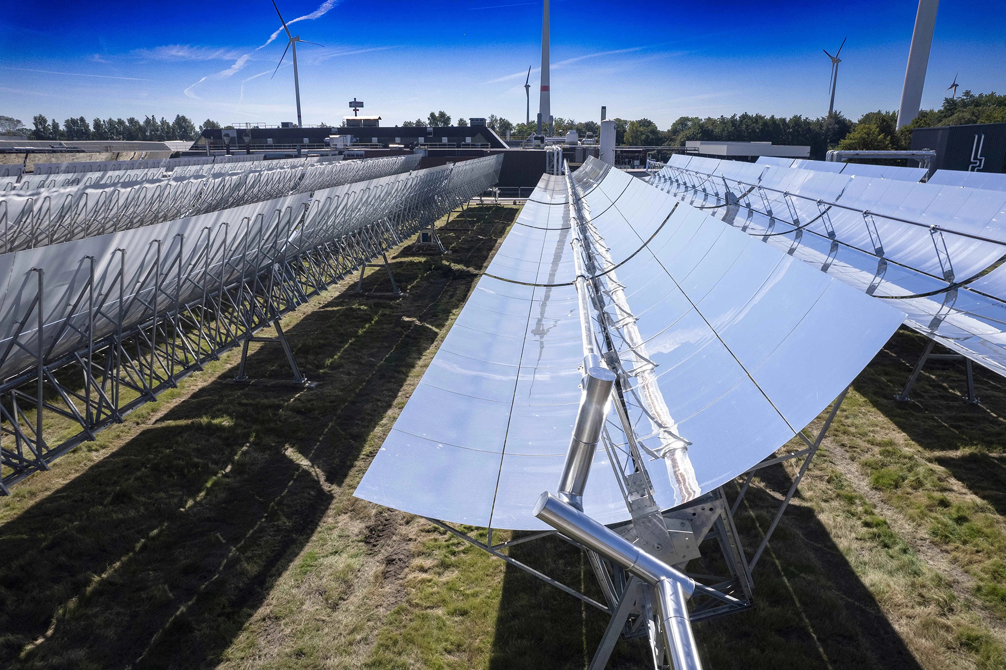 在抛物面槽式或线性菲涅尔系统中,太阳辐照被集中到位于焦线上的接收管上。流经接收管的传热流体吸收集中的热量,并将其传递给任何类型的用户,如热交换器。
